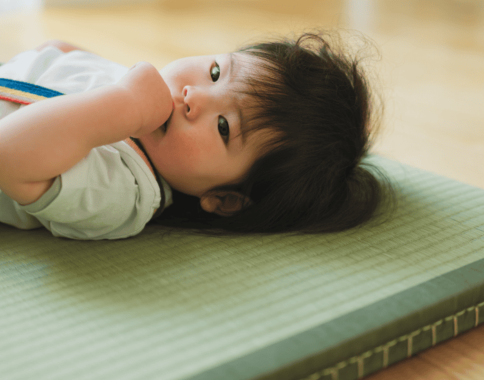 1歳の息子は畳の目のザラザラした感触が気に入ってお昼寝以外でもGorontoの上で遊んでいます。もう少しで2人目の子どもも生まれるので兄妹で愛用していきたいと思います。